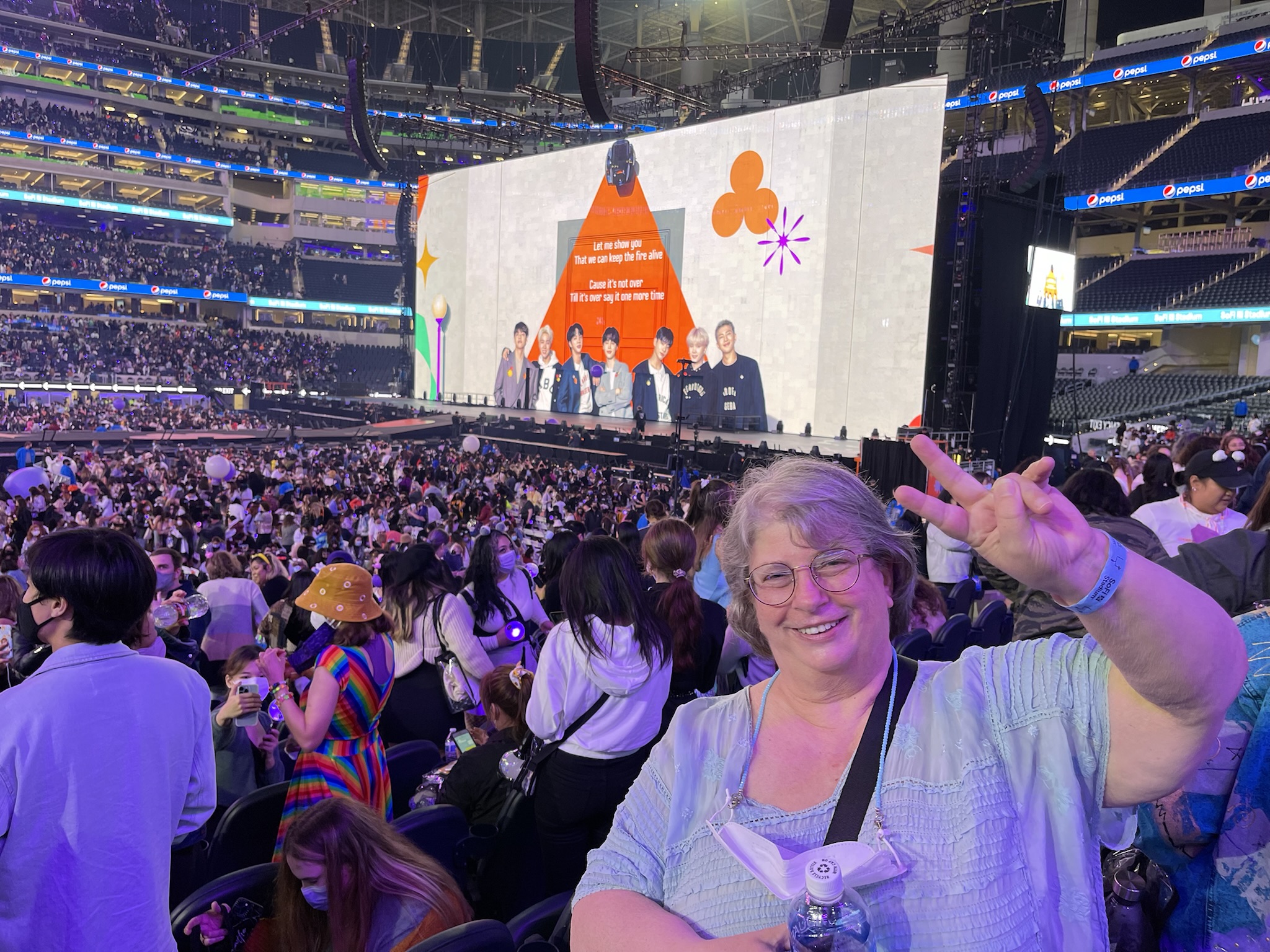 I still know pretty much nothing about BTS (sorry) other than my friend Bettye loves them (as does, apparently an unprecedented portion of the world’s population among whom I am once again blissfully out of touch). HOWEVER, I have waited for this post to share the experience through your eyes and emotions and I am feeling so happy reading this for every reason possible. I love your love for the band and your appreciation of the work they put in (esp since I can barely do my mall walk without getting winded and these dudes be aerobic specimens to sing while pulling off those moves and for 90+ minutes). BTW the tweeter deleted their post with the signature move so I’ll have to take your word for it.
