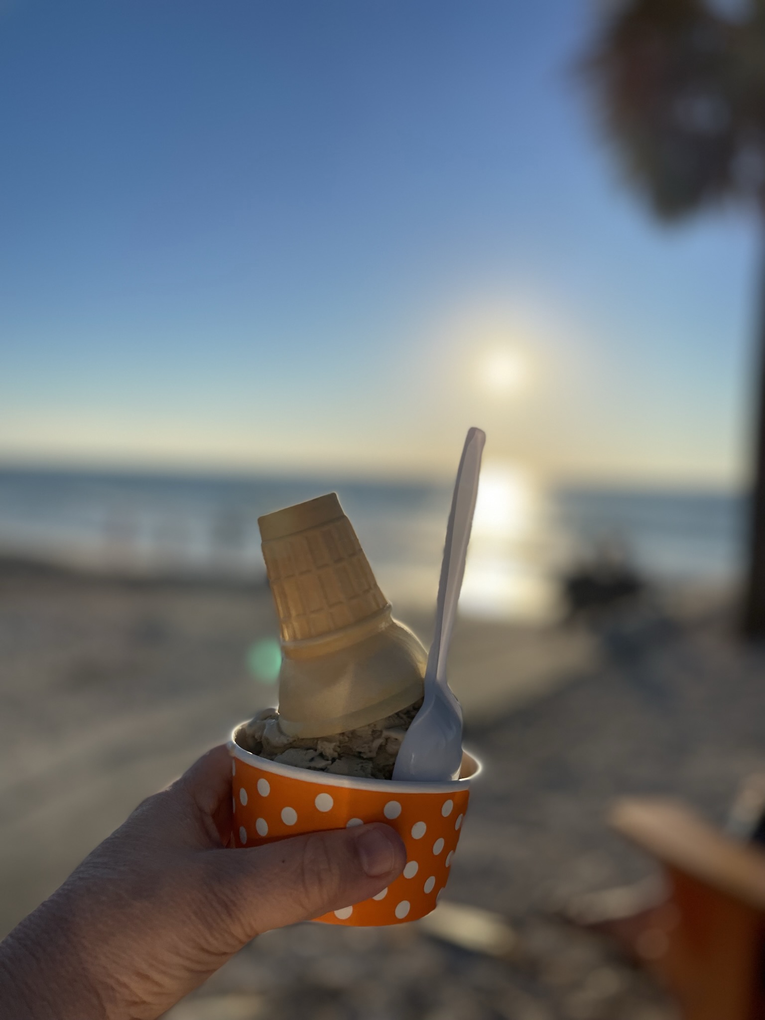 Then continued onto Passa-Grille in search of “ice cream on the beach.” We were there for sunset. Then had a light dinner on an upper balcony overlooking the beach and long-glowing sunset sky. I was FREEZING again (sitting outside – cuz I’m an idiot – in linen shirt and pants and no jacket).