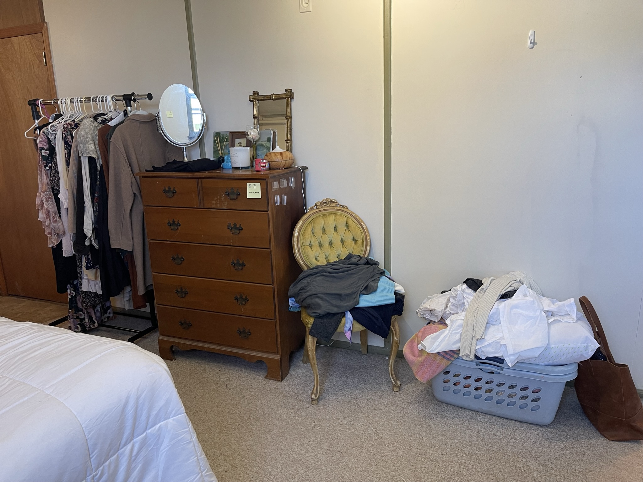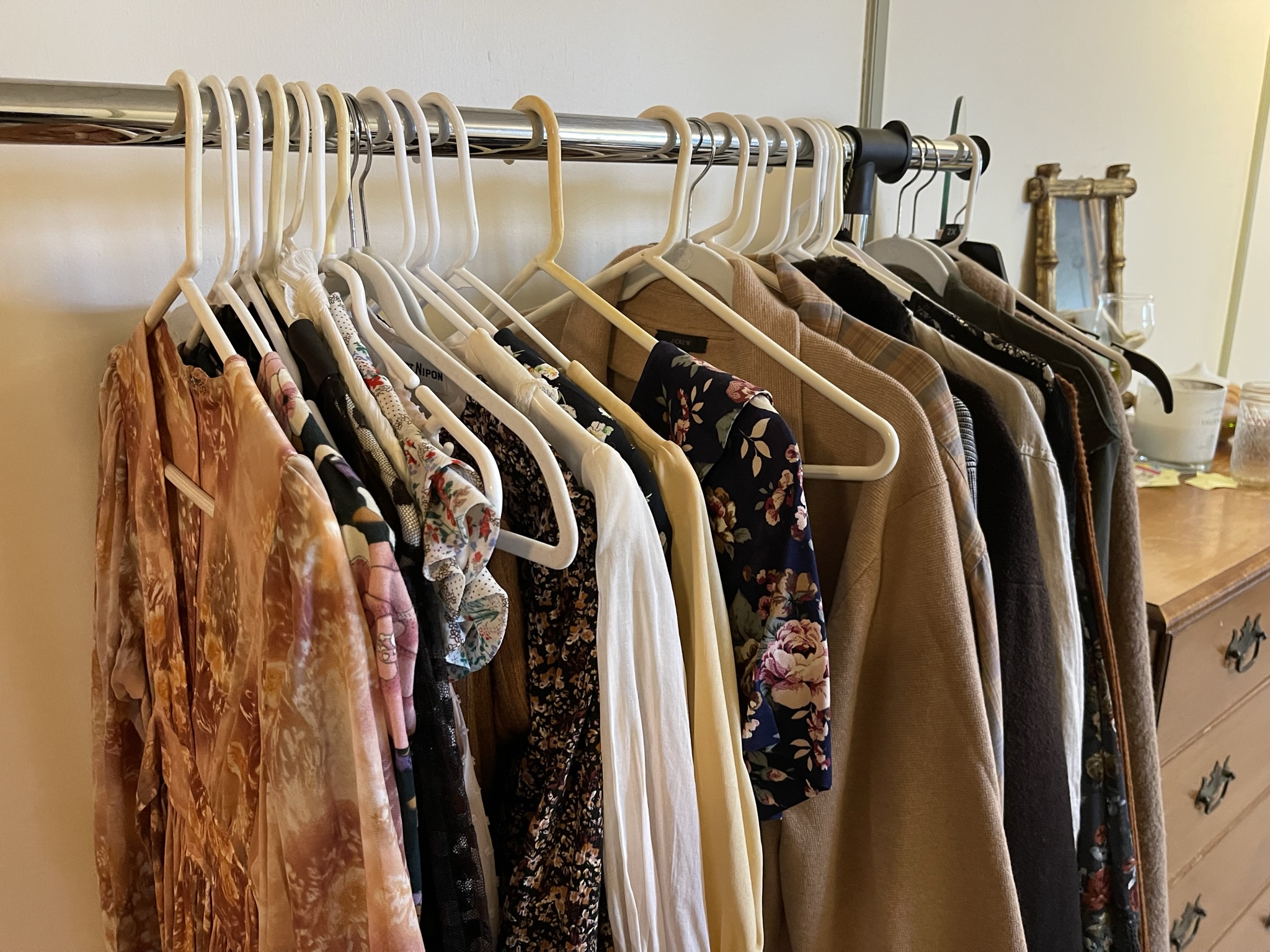 AFTER – so happy to get the clothing rack out of the bedroom. It’s all stuff currently listed on ebay (and 2 of my coats). I need to empy it out a bit before I can list more cuz there’s nowhere else for it to go!