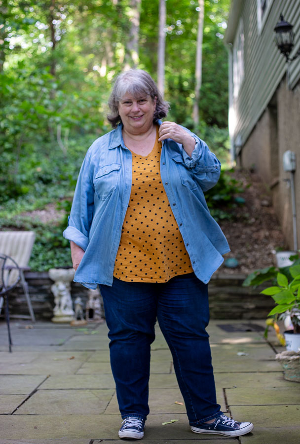 And it’s HOT. We’ve had a really lovely spring, dry and on the cool side for the most part. My apartment was not squishy and I haven’t even set up the fan yet, let alone the air conditioner. So, a tee shirt for lunch in the car…and the chambray button-down cuz…well, just CUZ…but also, for the air conditioning in the office.