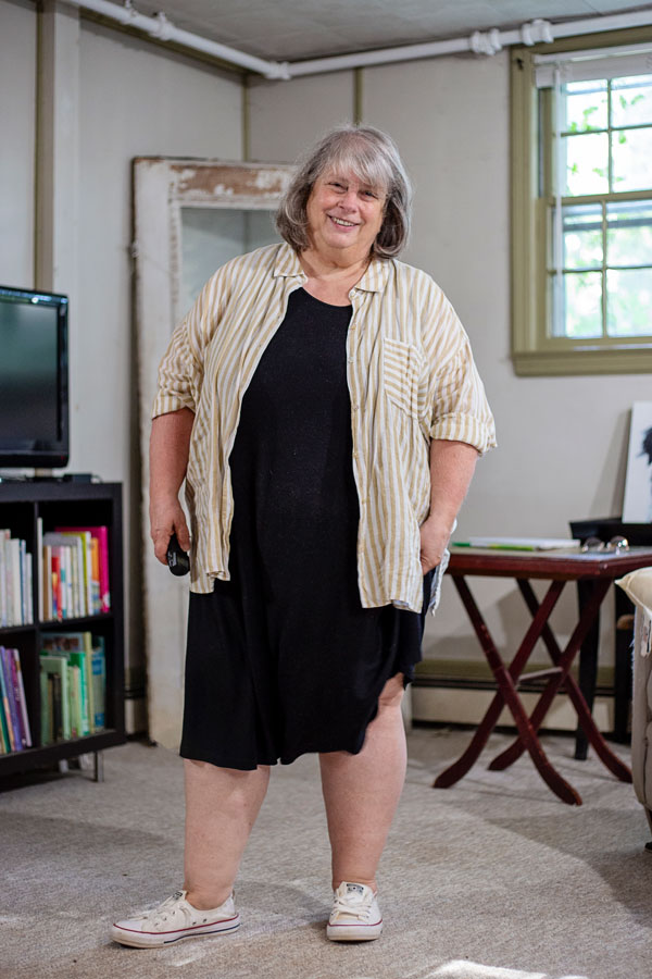 So, swingy-away-from-the-body sleeveless dress with linen button-down worn unbuttoned. And wouldn’t sandals be nice?? Sigh. Just another perk of retirement (as though there weren’t enough already).