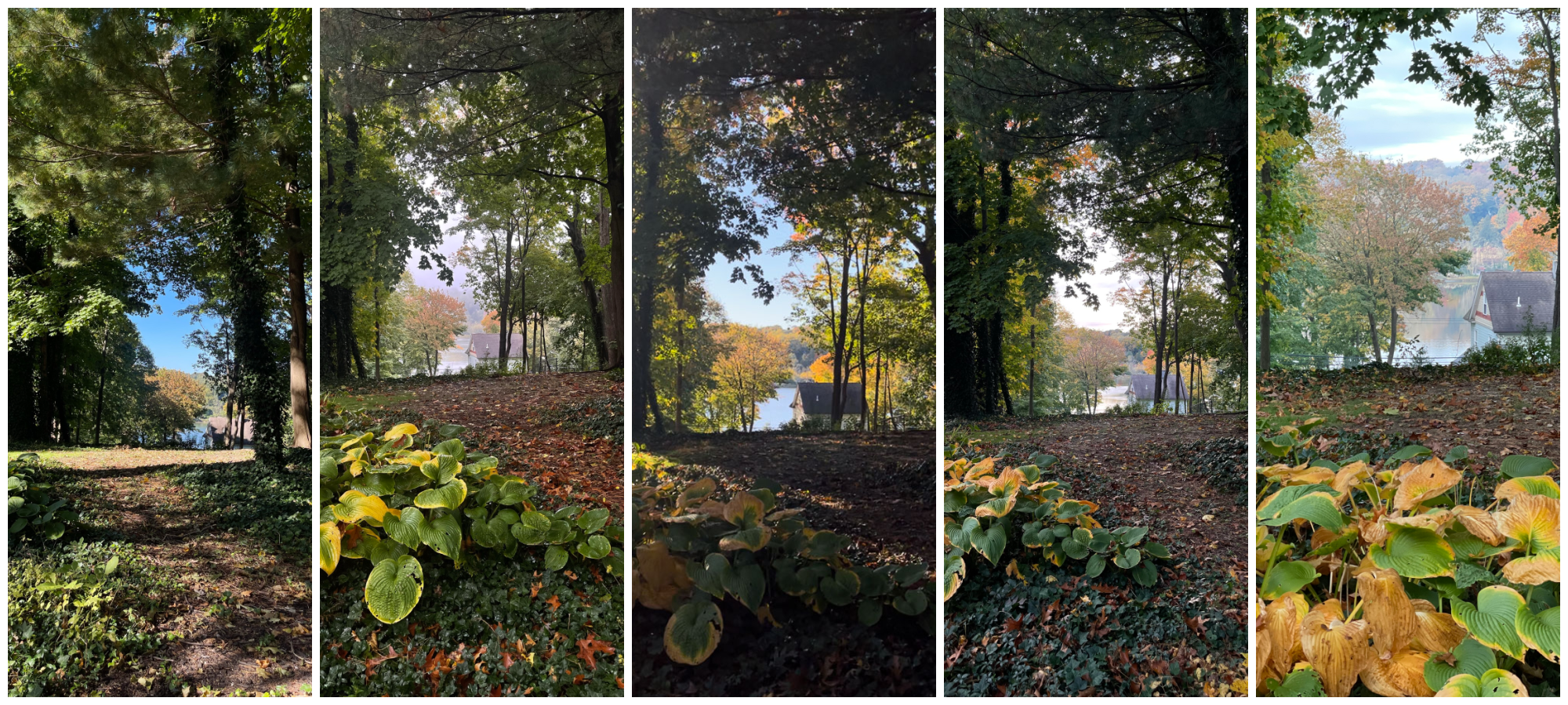 Happy November. October is a blur for me. I didn’t do much cuz covid and post-covid kicked my butt…but I DID take a picture almost every day looking down from the driveway towards the pond below, I wanted to show the progression of season.