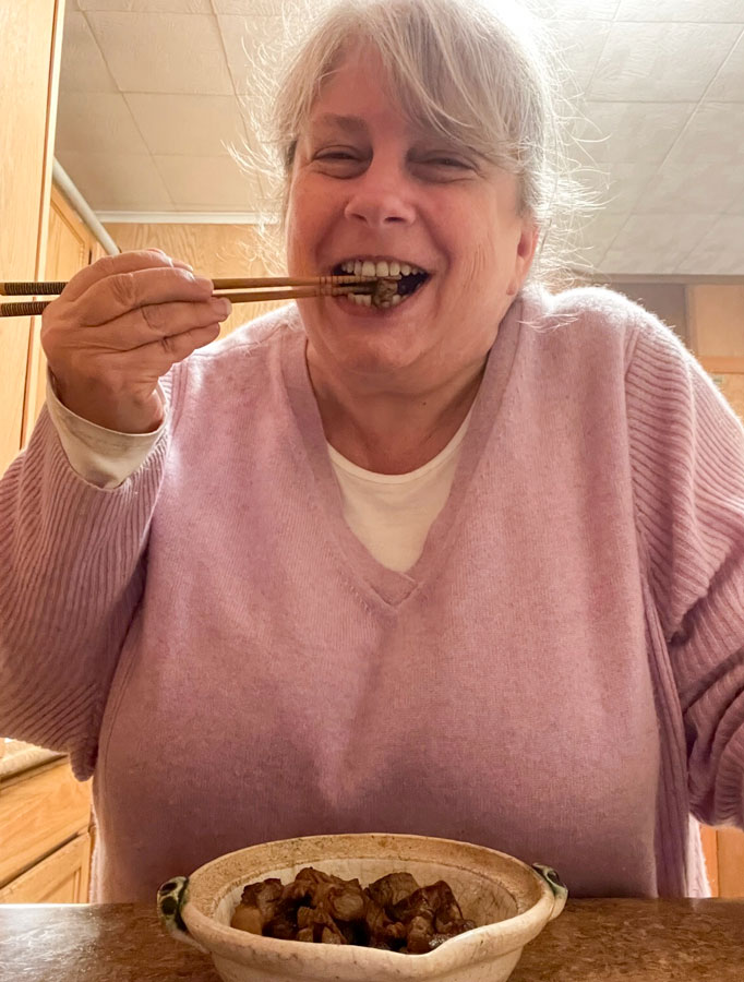 Bought us chopsticks to slow down our eating. PC is coordinated and didn’t struggle like I did. Could easily starve to death if I had to eat every meal with them. I admire your persistence at perfecting their use.