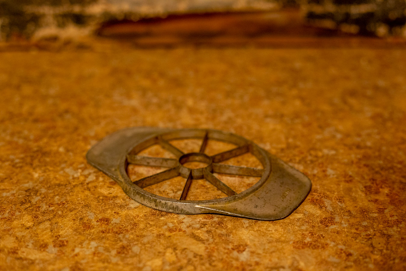 Cheese slicer. Also my mother’s. Also made in Taiwan. Apparently in the 60s/70s, Taiwan was rocking the kitchen gadget industry. Same as the apple corer – I’ve used other ones over the years: plastic metal, wire….this beats them all. It looks like hell…all these things do…but they work as well as they did on their Day One. I eat a lot of sliced cheese. So this puppy gets a LOT of use.