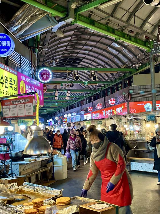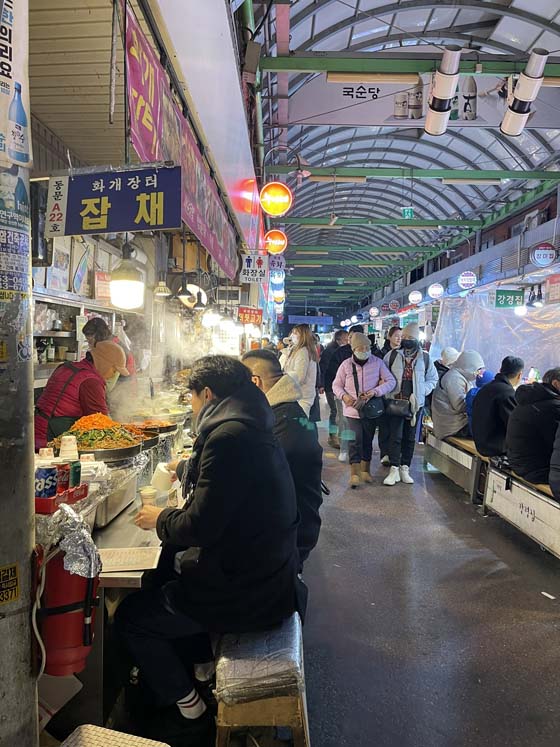 The one shining evening was, of course, Thursday. We went to Gwangjan Market, one of the oldest traditional markets in Seoul, with rows and rows of traditional Korean food vendors.