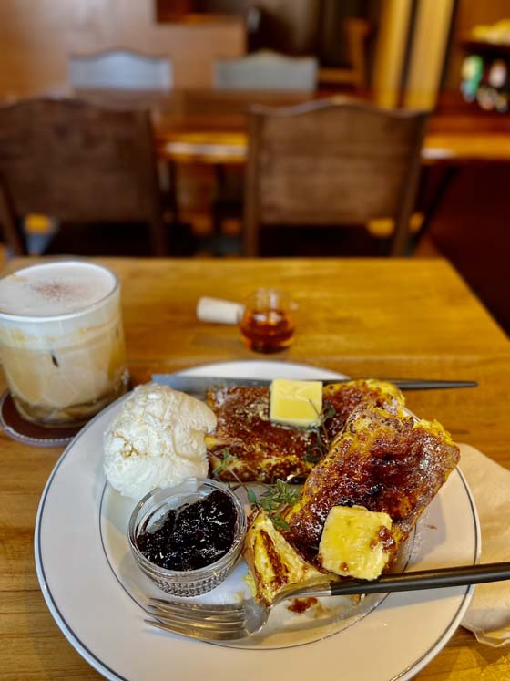Can I just tell you about this french toast?? So, they frenched it, but THEN, they sprinkled it with granulated sugar and BRULEED it, so it had the delicate, sweet, crispy coating of a creme brulee! Where has THIS been all my life?!? Served with butter, blueberry jam, and vanilla ice cream, it was lovely.
