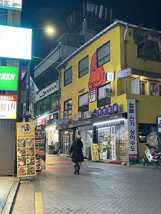 I’m looking in a very non-commital way at apartments online…something with a kitchen…that’s a little less $ than I’m paying now but that’s an easy commute to school and has a good window/view/light. There’s not a lot in this area…and it has to be really worth the effort of moving for me. Plus, I’d be leaving my building friend and it’s been good to have a 1) nearby friend for “let’s walk to the market/coffee shop/pizza/restaurant,” 2) someone to check in on me when I’m feeling poorly to see if I need anything. We frequently make convenience store runs for one another, or “do you have any milk for my mac&cheese?” or “do you have a 1,000won for the dryer?” So, gaining a kitchen means losing some things so it’s not an easy decision.