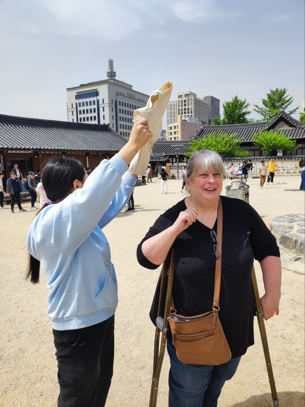 Class Trip Day! I was on the fence about going til the very last minute. The trip was to Namsan Hanok Village and Tower. The village was supposed to be for 45 minutes, and then the tower, 2 hours. I knew I couldn’t do the tower. I’ve been there before and it is a LOT of stairs. So I was like, I’m going to take a 45-minute Uber ride to walk around for 45 minutes, then take a longer than 45-minute (rush hour) Uber ride home while they all went to the tower?? On paper, it didn’t seem like a good plan. But at the last minute I was like JUST GO. I like my classmates, I like my teacher, I missed last term’s class trip cuz of kidney stones and I really had FOMO when I saw everyone’s pictures.