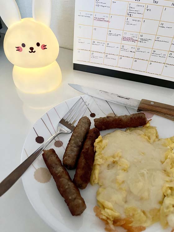 I’ve been trying to cook a little more lately. I found some Hormel breakfast sausages on Coupang (Korean Amazon) and am addicted. And eggs with cheese. I’m still online grocery shopping. The thought of carrying groceries home on crutches is just…not inspiring.