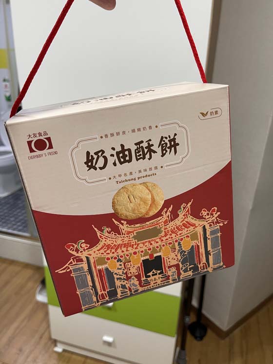 Forgot to share this last week…my Tainwanese friends always bring gifts. These were…I don’t know what they’re called,, but they’re about the size/shape of a 45rpm record (I’m dating myself), and like a cross between a really flaky croissant and dry, not sweet Scottish Shortbread…BUT with a really delicious filling, almost like a hotteok filling, but not hot. Plus, I love the box š