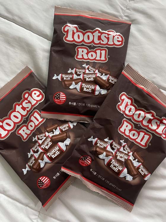 Trying to find the perfect snack to hide in my room for when I have cravings. This is not it, cuz I already ate an entire bag this morning. I thought cuz Tootsie Rolls are not really my favorite, that I’d be okay. No. I am a compulsive eater. If it’s HERE, I will eat it.
