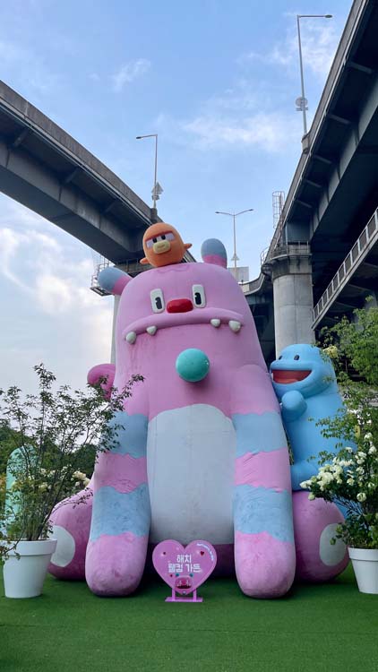 Right before the catheter got so painful, I met LEP#2 at the Han River. This is a mascot of something. Korea has a LOT of mascots and characters.