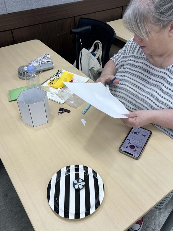 We had a culture class where we made some traditional Korean crafts – well…a reasonable facsimile thereof. These little mother-of-pearl “inlay” (not inlaid) keyrings and cell phone button things…and a collaged box.