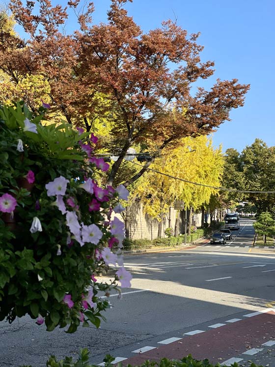Today I played hooky. I went to a park that has looked pretty on social…with a hanok style cafe on the grounds. But it is still just a little early for a full foliage, so I had a nice iced latte with a salt bread…and then walked around and took a few unremarkable photos.