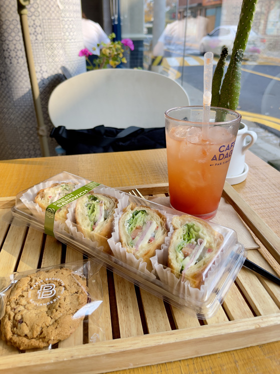 Afterward, I roamed Café Street—a picturesque blend of traditional Korean houses and modern coffee shops, filled with couples, friends, and stylishly dressed dogs in strollers. Though I was enjoyed the lively vibe, I was hungry, so headed for a bagel café I’d found online. The place was charming, but the late-day offerings were…less than fresh. Still, it filled the gap.