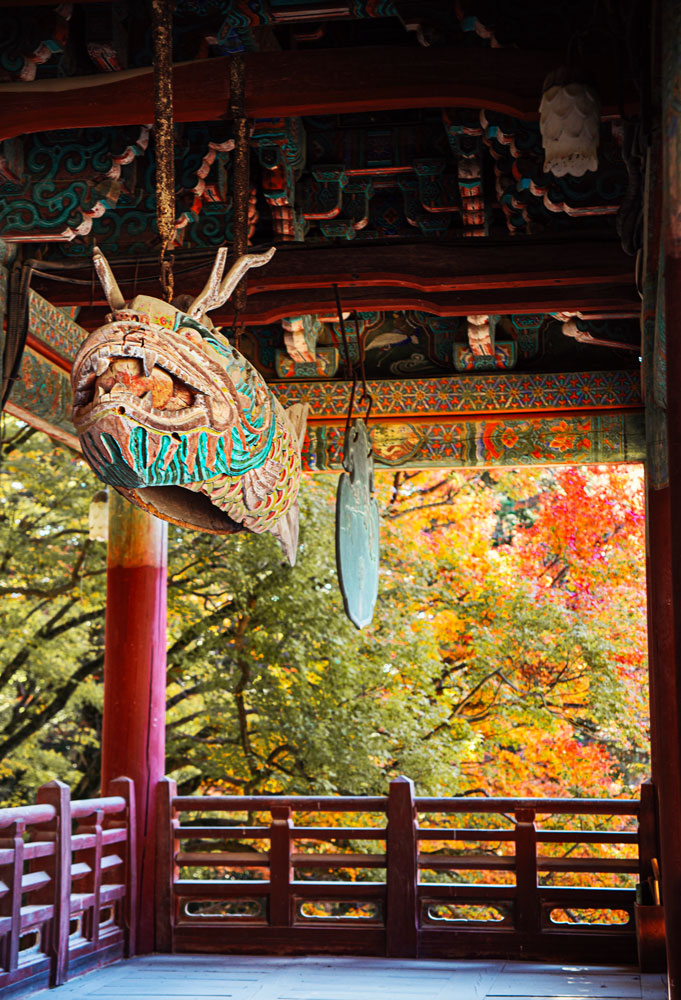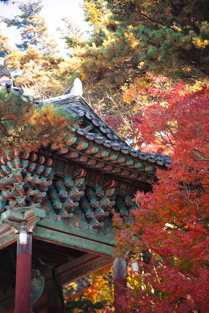 The colorful autumn foliage against the ancient stone architecture was breathtaking, and even though the main hall was under renovation, the scenery was serene and beautiful.