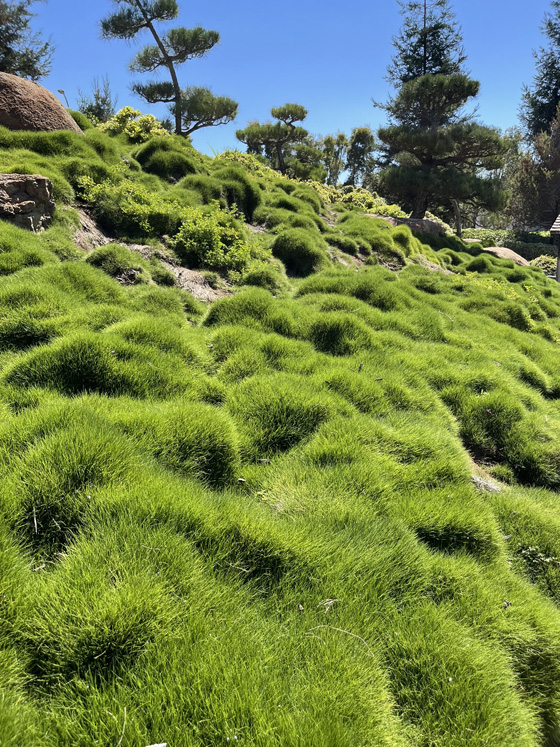It seemed a little “new” to me. A little too pristime. I mean, it was fine. A 6-acre garden next to a water purification plant, so that supplied the water for the large pond and several little babbling brook/waterfall features. Maybe it was just cuz it was here in California…like there was a “dry garden,” for the SoCal desert climate…and I had a hard time differentiating the “dry” parts from the non dry parts. My favorite spots were that little tea house structure next to the pond…it was shady with a little breeze coming through…and a stone wall bench next to the bamboo garden…also shady with a breeze.