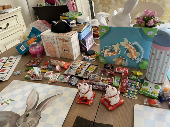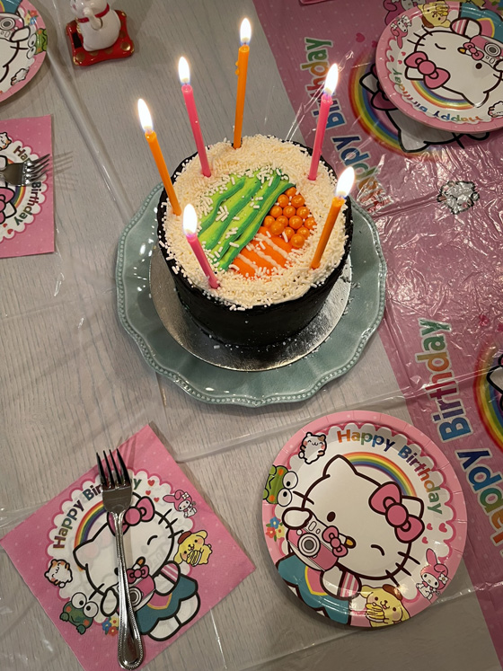 Another quiet day at home…with an afternoon surprise. A Japanese-themed birthday party for me (cuz I’ll be gone before my birthday), complete with tons of Japanese candies and snacks, delicious sushu dinner out, and then a sushi roll birthday cake! It was really super sweet.