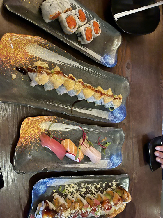 We took the dogs to a small, nearby park for a quick walk, showered up and went to an all-you-can-eat sushi place…and then waited so long for the check that we wore ourselves out and  bypassed our other plans and just headed straight home afterwards. Went to our separate rooms, I did my work, she scrolled…and now I’m in “my room” (which is really the dogs’ room) and she’s in bed and it’s 9:09pm and we’re both ready to crash. I mean, I’ve been up for 7 hours for crying out loud!