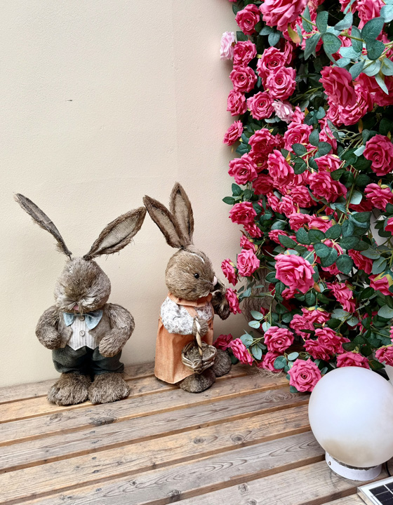 Mr. Rabbit (toughly): I’m going to keep an intimidating look-out while you smell the flowers.