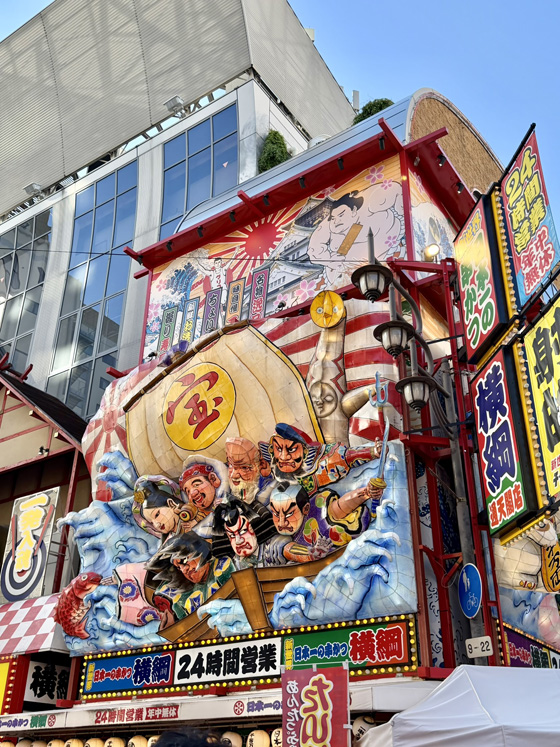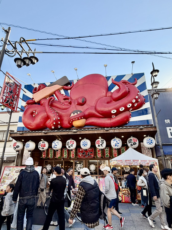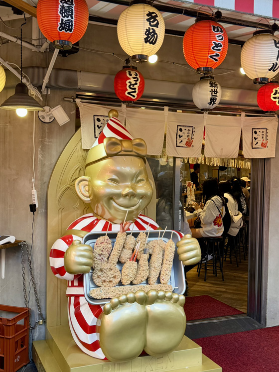 When I walked out of the zoo I was right across the street from the entrance to Sinsekai which is a warren of alleyways filled with bars and restaurants. And they all try to outdo one another to catch the eyes of passersby and lure them in – huge 3d displays, loud music, etc. It’s a little chaotic, but in the best possible way.