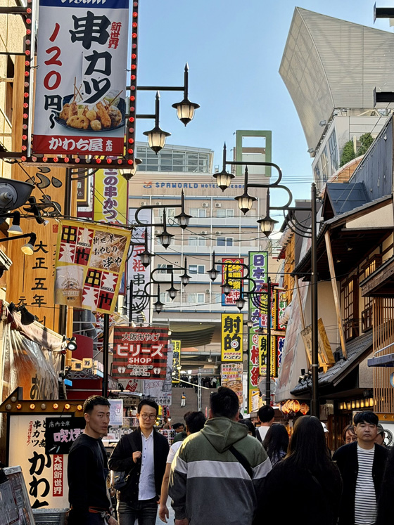 According to the bus tour guide the other day, Shinsekai means “new world,” and was modeled after New York’s Coney Island. I totally see it.