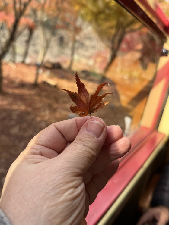 Today I got up crackadawn and headed to downtown Osaka to meet up with a tour group bound for the Sagana Romantic Train ride and the Hozugawa River Boat Ride, both in Arashiyama, in Kyoto. I could have done them on my own when I was in Kyoto, but I was anxious about getting from Point A to Point B to Point C, so the bus tour seemed a good idea…and meant for once I could just passenger and look out the window without worrying about stops and stations and platforms.