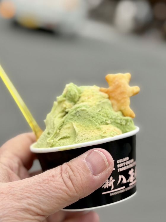 It was one of the best ice cream flavors I’ve ever had. Maybe it was actually gelato, I forget. But it was green tea and mango. I love the flavor of green tea (in everything except tea), it’s such a clean, fresh flavor/scent…and then the mango brightened it up a bit with some sweetness. Ah, they made a good pair.