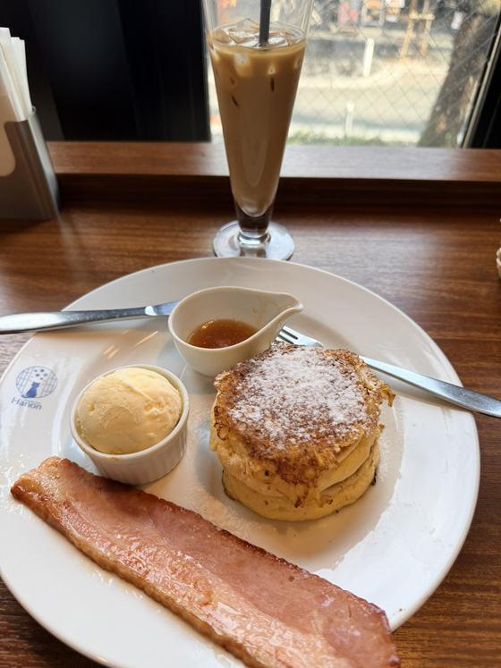 Got myself together, checked out of the hotel, and headed to Cafe Mochi Mochi for a cat-shaped souffle pancake breakfast.