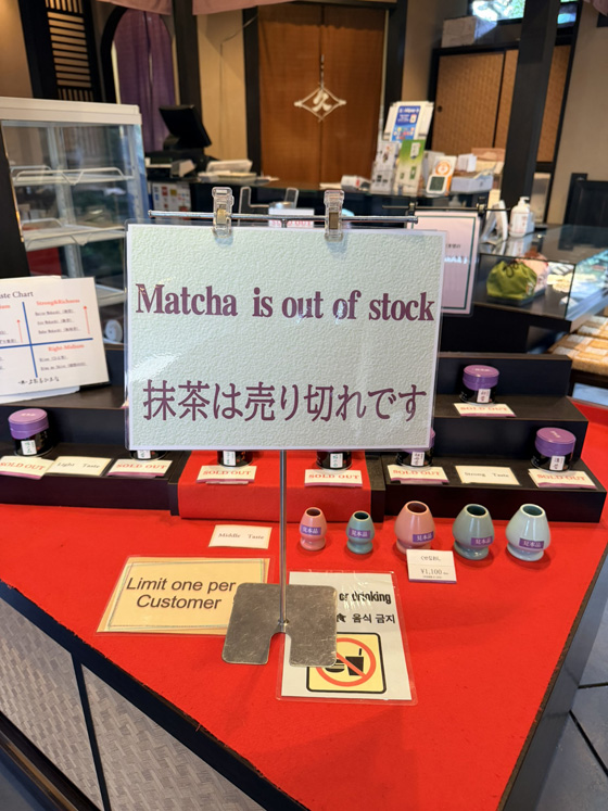 The second shop was closed on Tuesday (I’ve run into a lot of random day closures while in Japan)…the third closed at noon (which I discovered when I arrived at 1:30)…and the fourth was open, but was sold out of matcha. I went into another random shop but it looked a little rinky-dink and was so busy I couldn’t ask the sales staff any questions…and what do *I* know about matcha?? Nuthin.