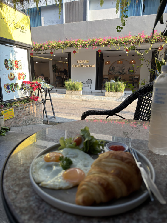 I arrived early at the market where we were meeting, wandered down a side alley, and found a small outdoor café framed by lush ferns. I ordered a croissant with fried eggs and bacon, watermelon and pineapple, and…because how could I not? a “kidney stone” juice. I’m not having issues, but if kidney stone juice is on the menu and sounds delicious, you order it.