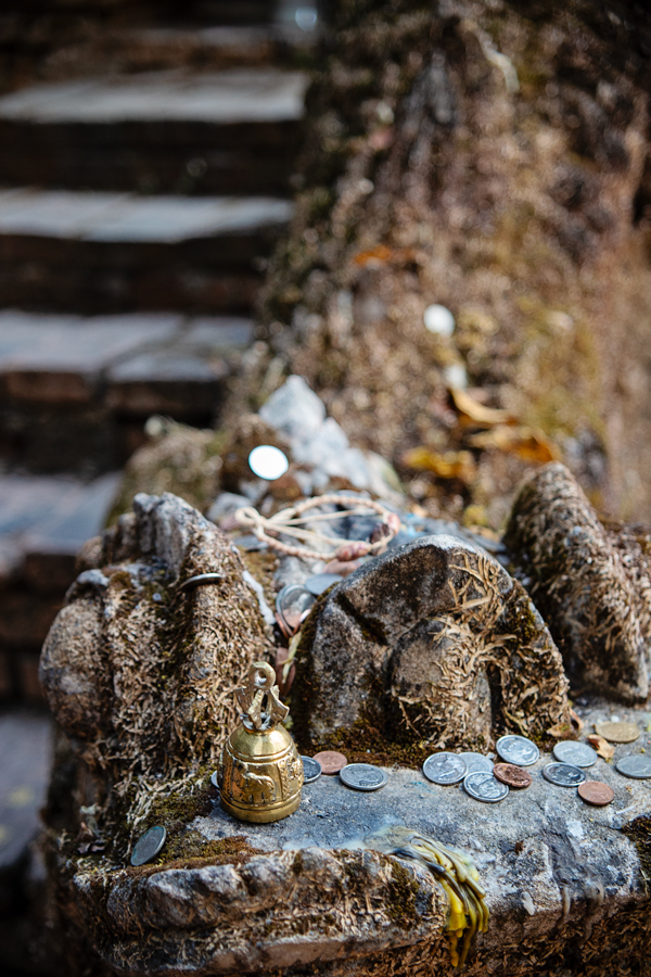 Coins placed on the chedi and shrine areas at Wat Pha Lat are small offerings, meant to create good karma, bring a bit of luck, show respect, and help support the temple and its monks.