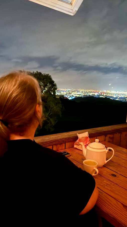 After that, we drove up to an overlook of the city, had hot drinks in like a fire lookout style cafe, and caught up until it was time for me to head back to the airport.
