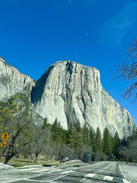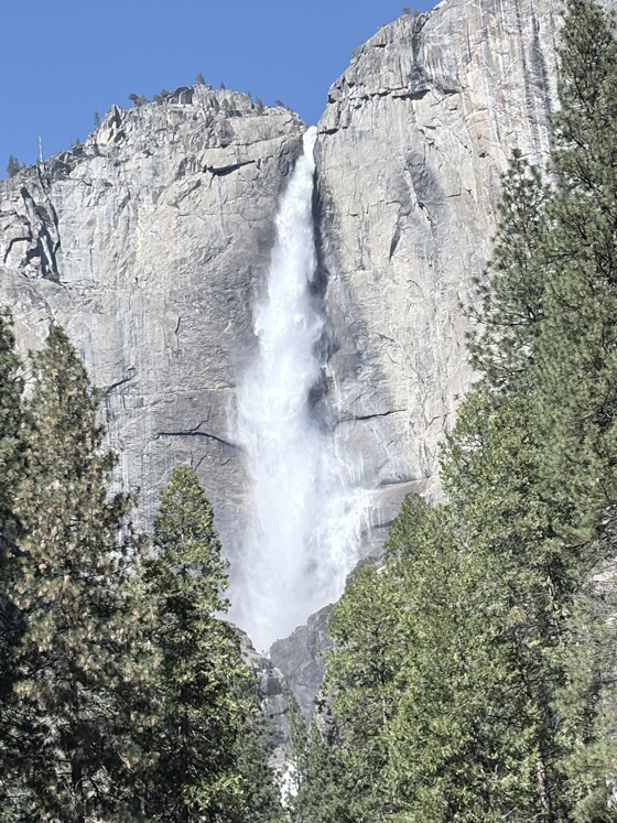 One day we drove up (up? down? I’m so not well versed in Central California geography) to Yosemite Park, where I have never been. It was a lovely, scenic drive with suburban streets turning into farmland, then green rolling hills, then rockier mountains. We had a nice lunch at the big lodge restaurant in the park, then visited some waterfalls…then it was time to drive home.