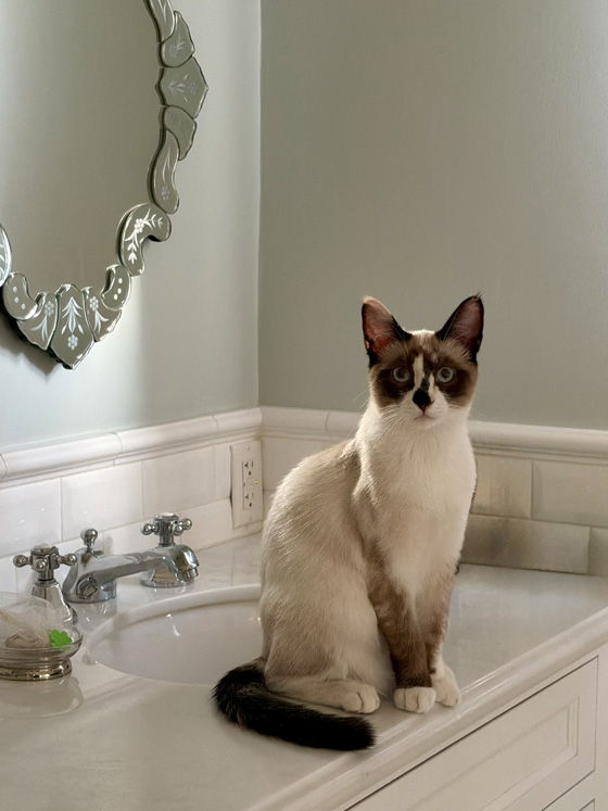 While my niece, et al, went to Hawaii for 10 days I was left at home to take care of the animals. Last year it was Blue the Dalmatian and some tropical fish. This year there were also two new kittens – Cocoa and Cosmo, or, as I prefer to call them, Flash and Dave. They are the mellowest kittens I’ve even known. They’re about 6 months old now and just…limp. Ha. In a good way. Pick them up and they’re just limp in your arms. Set them down wherever you want them – sofa, bed, etc, and they just limply lay there. Not in a “is there something wrong with them” way, they’re just…compliant.
